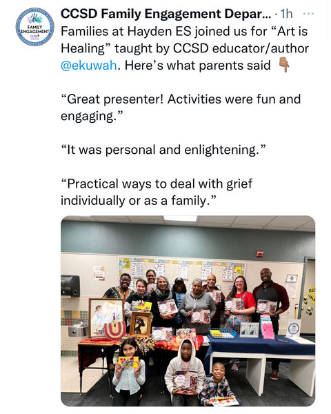 Are you or your children having difficulties adjusting to life events, such as health changes, divorce, moving, or the death of a loved one? Educator and author-illustrator Ekuwah Mends Moses will engage families in the creative arts and share helpful community resources for dealing with grief or loss. She will also sign and give away several free copies of her nonfiction picture books!